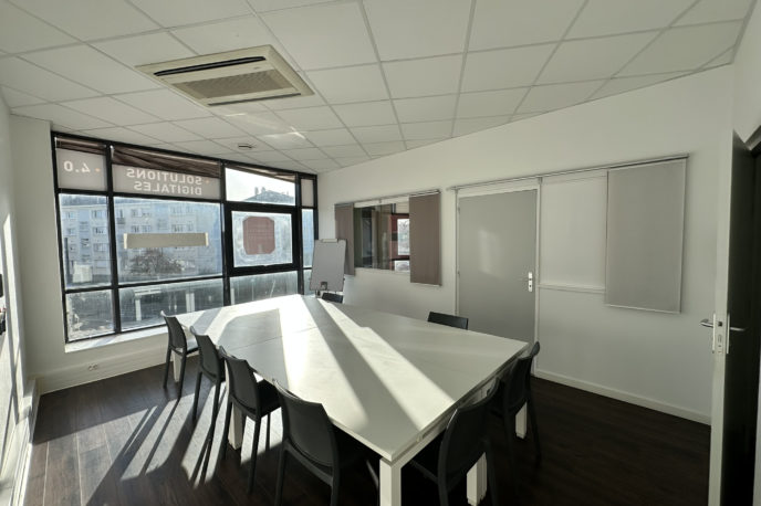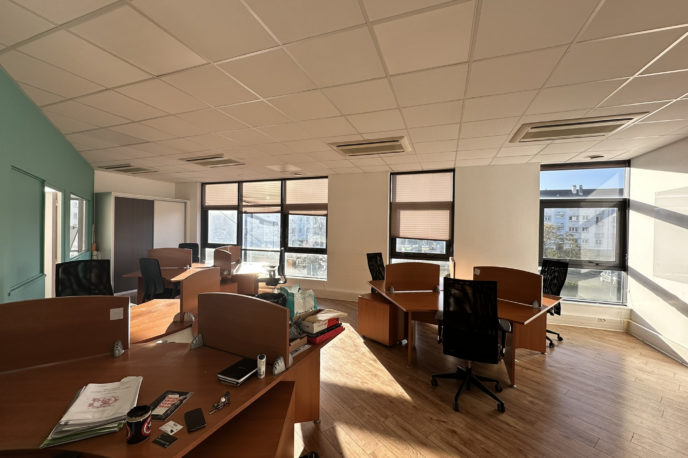 Ces bureaux disposent d’une entrée d’environ 5m2, de 2 bureaux fermés d’environ 19m2 et 10m2, et d’un open space d’environ 48m2. Sanitaires homme et femme sur le palier.